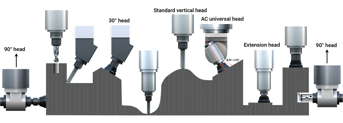4. Comprehensive automatic angular head options to meet the diverse machining needs: A/C axis indexing 1 degree.